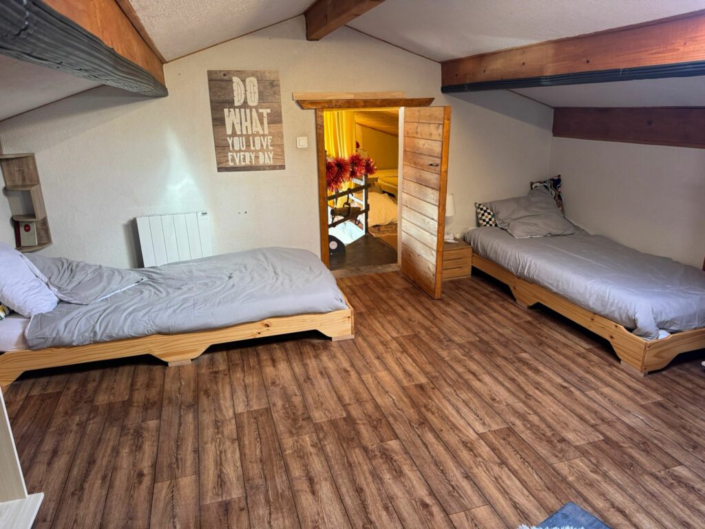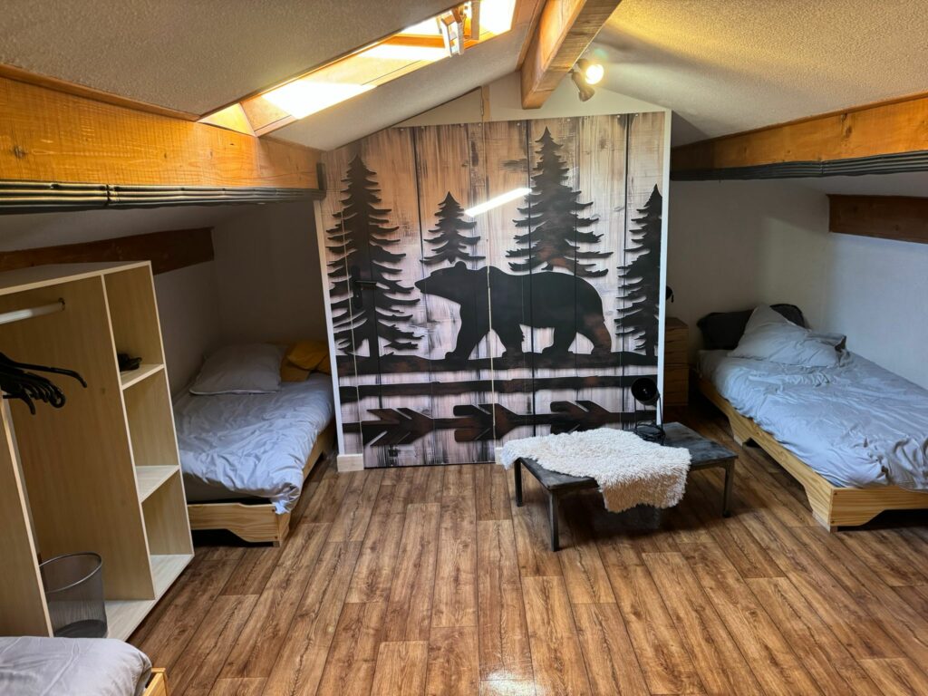 • 1 mezzanine dortoir avec 4 lits en 90, idéal pour les enfants avec une table basse. Dans l’armoire du dortoir il y a des jeux de société et des BD. Il y a des prises à coté de chaque lit. Dans cette pièce, nous avons récemment créé une salle d’eau pour plus de confort!